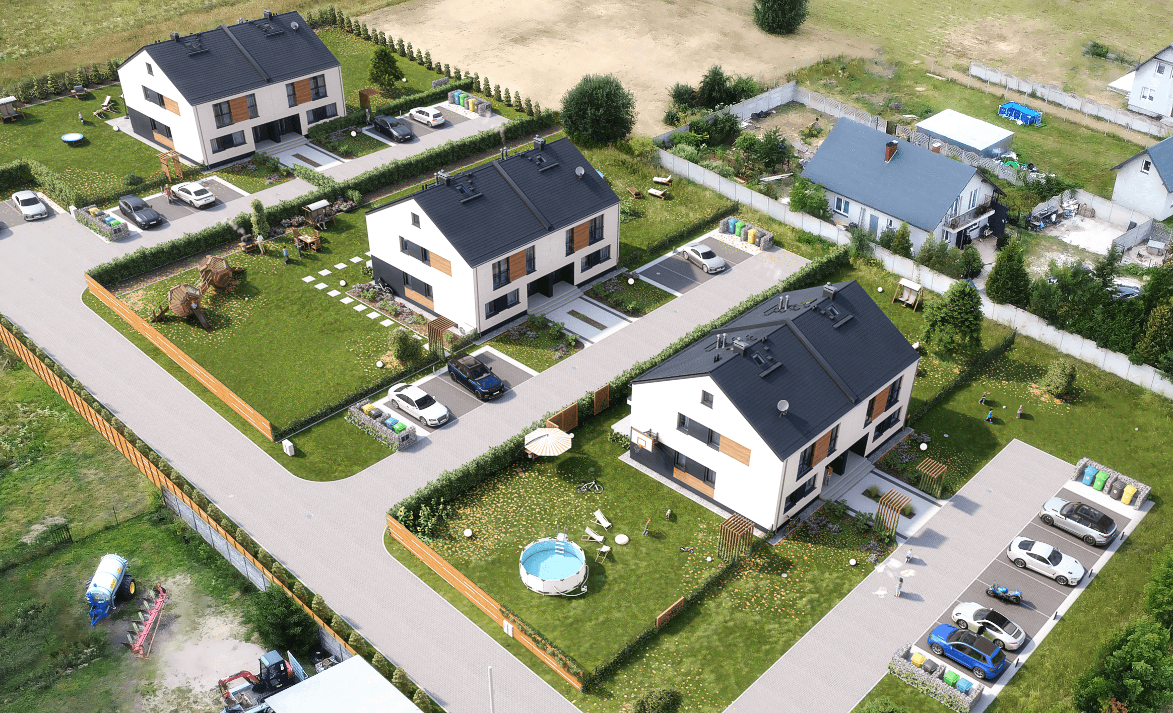 Naszym celem jest zapewnienie mieszkańcom prywatności, bezpieczeństwa oraz zdrowego stylu życia w spokojnej, wiejskiej okolicy. Budynki są energooszczędne, wyposażone w pompy ciepła i przystosowane do indywidualnego montażu paneli fotowoltaicznych.