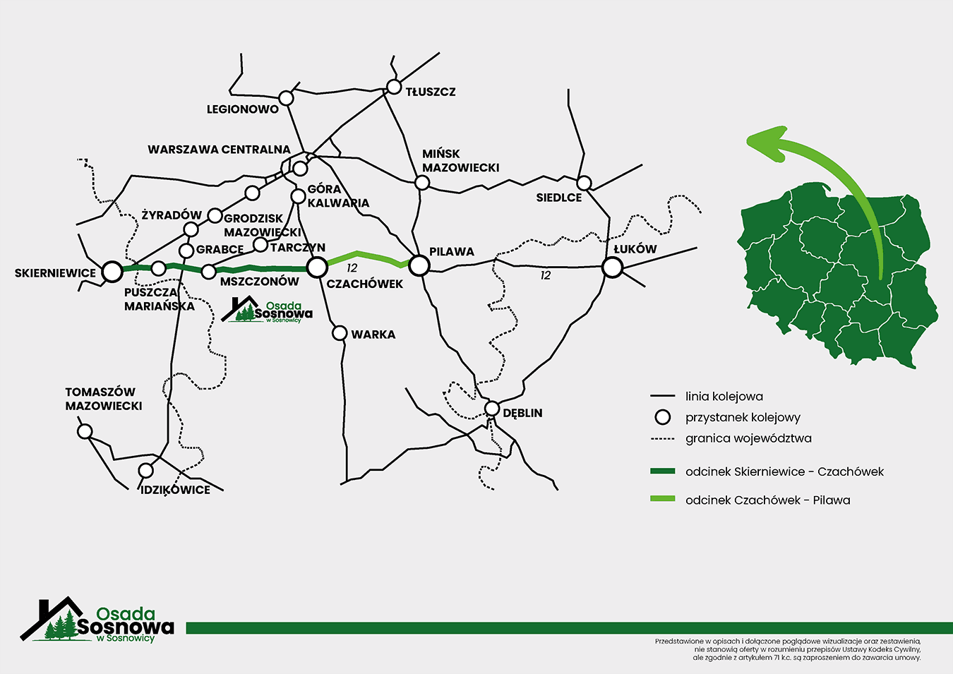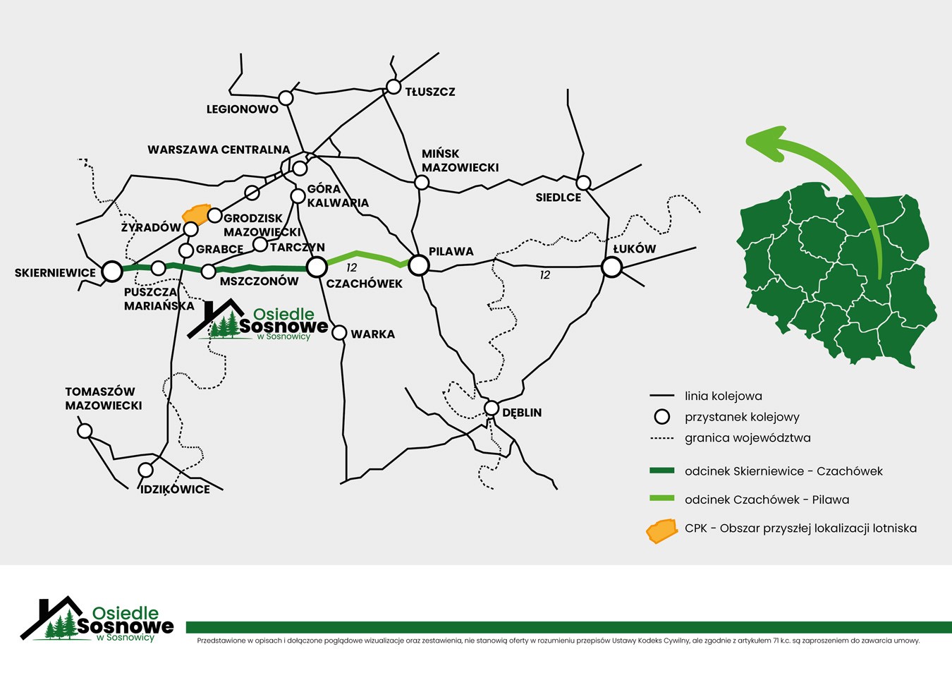 Osiedle Sosnowe zapewni naszym Klientom idealne połączenie życia w ciszy i spokoju z wygodą korzystania z miejskiej infrastruktury w mieście Mszczonowie posiadającym szkoły, przedszkola, sklepy, punkty usługowe oraz przystanki komunikacji autobusowej łączącej miasto Mszczonów z miastem powiatowym Żyrardów, Warszawą i komunikacją kolejową istniejącą jako i nowo projektowaną do CPK.