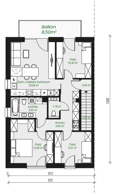 Dom Osiedle Sosnowe 1, lokal na piętrze B